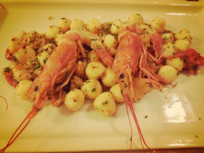 Nelle prime portate assistiamo a gnocchetti e tagliolini che sposano crostacei e mare avvolgendosi in pistacchi e mandorle. Porzioni abbondanti di sapore.