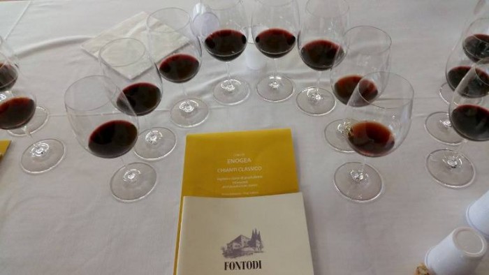 FONTODI DINO 2012: Una scommessa di Giovanni Manetti e Franco Barnabei. Un vino prodotto in anfora in assenza totale di alcun passaggio in legno. L’espressione è del tutto diversa rispetto ai calici degustati sin qui. Questo campione viene da un imbottigliamento di13/14 mesi. Color rubino scarico. Vivace. Il primo attacco olfattivo è ferroso- minerale. Lasciato ossigenare regala note floreali e di ciliegia rossa croccante. Al gusto è piacevole la mineralità. Straordinaria la sensazione di ciliegia croccante. La qualità di questo vino è la sua tannicità e salinità. Tannino presente ma ben delineato, senza contorni offuscati dal legno. Da non ricondursi all’identikit del Chianti ma direi il figlio del Sangiovese. Giovane ma con un suo dna. Troppo presto per apprezzarlo ma interessante da assaggiare nel prosieguo.