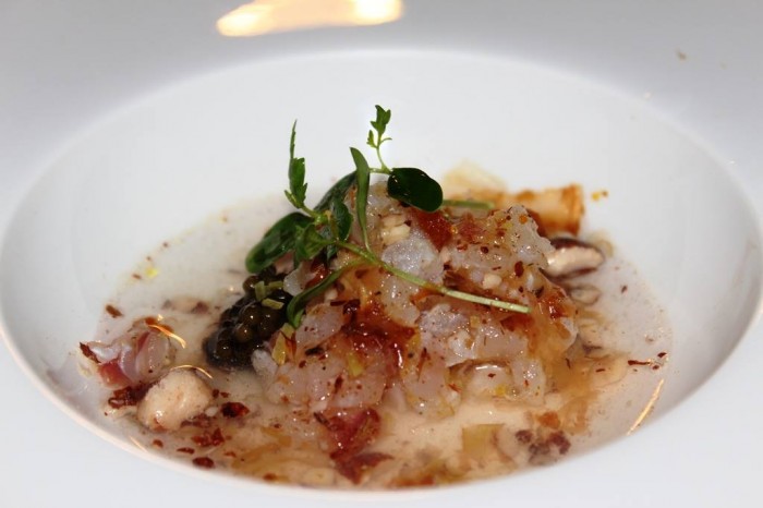 1) La modernità dei piatti. Acidità, toni amari, freschezza, sapidità sempre cercate, i gusti solo rotondi spesso stucchevoli e grevi appartengono al passato, questa cucina è proiettata nel futuro, senza rinnegare le tradizioni ma aggiornandole. I due piatti che più mi hanno colpito: “Burrasca”, piatto sapido e nervoso, il nome rende perfettamente l’idea delle sensazioni palatali; “l’Orto”, delle verdure integre nelle loro note leggermente amarognole, accompagnate dalle animelle che forniscono una consistenza davvero intrigante, l’unica concessione nell’utilizzo di grassi un filo abbondante di olio evo.