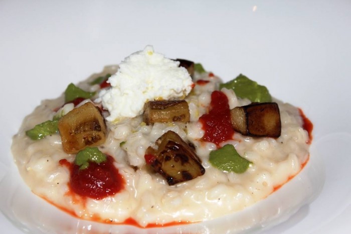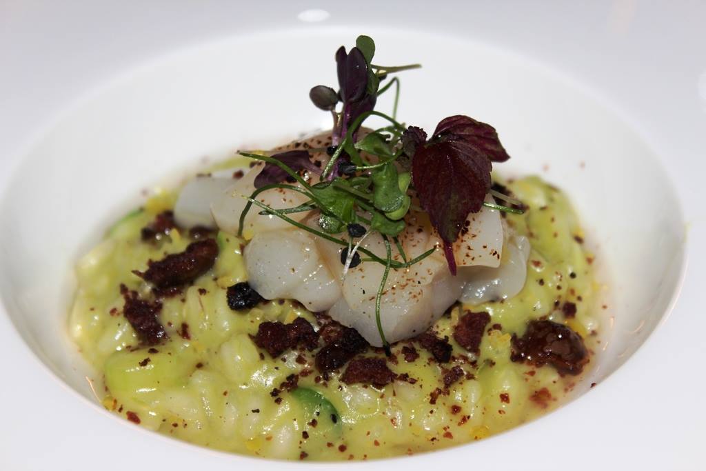 2) I risotti. Venticinque sono sempre in carta, preparati anche per una persona! Partono sempre da un brodo vegetale, dando la possibilità anche a chi non mangia carne di avere tante scelte. Il Carnaroli, “Parmigiana di Melanzane” e il Carnaroli aglio olio e peperoncino li avevo già provati ed entrambi mi avevo rapito sia nell’esecuzione sia nell’abbinamento. Il risotto a primavera non lo conoscevo ed è stato amore a prima vista. La tecnica in questo risotto è quella precisa e puntuale, l’acidità del succo di limone, i germogli e le verdure lo rendono fresco, brioso, la capasanta a crudo fornisce una consistenza piacevole, ne mangerei una betoniera.