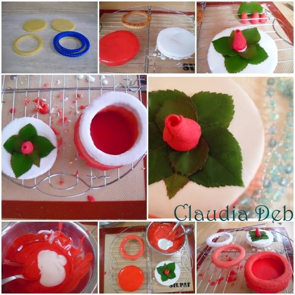 Una volta asciutti assembla il cofanetto: applica l’anello rosa scuro sulla cerchio rosso, poi quello rosa chiaro ed infine quello rosa pallido incollando i vari pezzi tra di loro, con uno strato di glassa reale. Utilizza il cerchio bianco con la rosa come coperchio del cofanetto. Confeziona con del cellophane per alimenti e non ti offendere se mamma non lo mangerà!