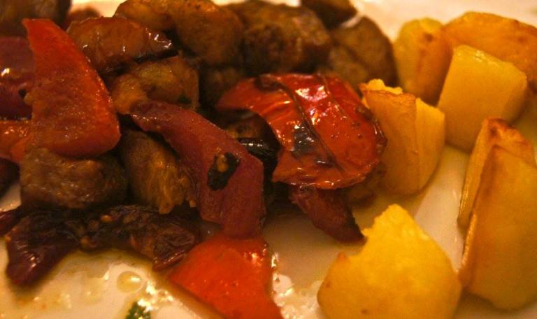 Un secondo piatto: maiale paesano con papaccelle e patate.