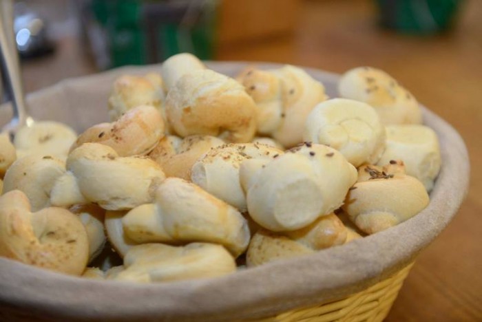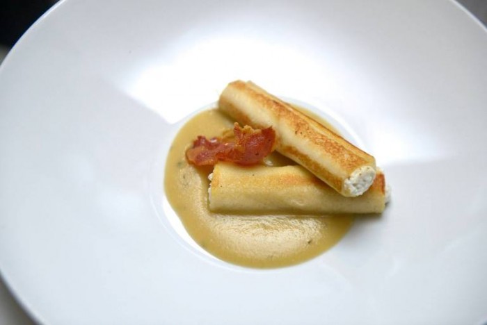 Cannolo di pane con ricotta affumicata e ceci di Cicerale e guanciale tostato