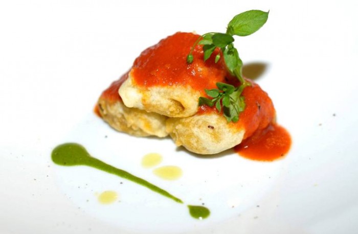 Paccheri fritti ripieni con braciola e conditi con il suo ragù