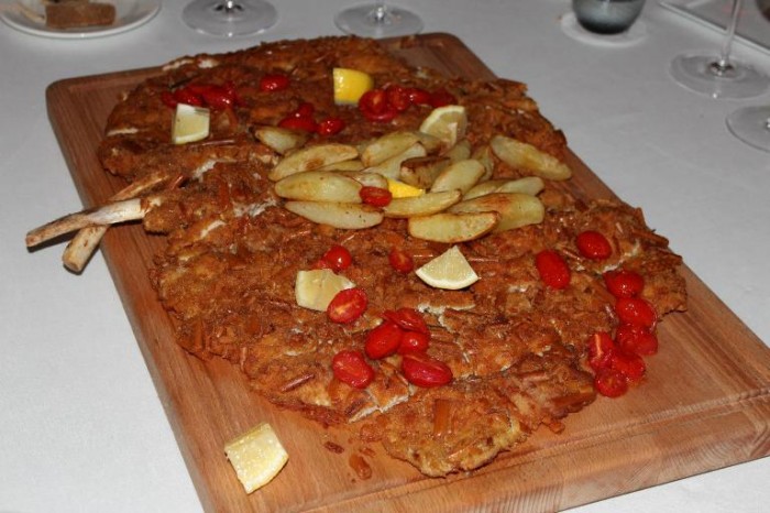 L’orecchia d’elefante. Una carne tenerissima, impanata nel pane raffermo e poi nei grissini, fritta nel burro. Un piatto conviviale preparato alla perfezione, rientra di diritto in uno dei miei piatti da provare almeno una volta nella vita, nonostante non sia un grande appassionato di carni in generale.
