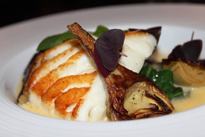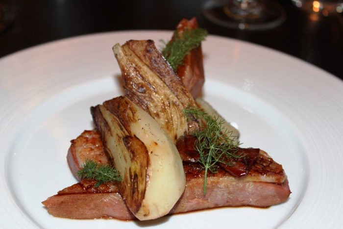 La più interessante tra le portate principali, il merluzzo è alto due dita e la cottura nel sidro gli dona una soffusa acidità, mai invasiva, le cipolle e i carciofi grigliati e affumicati completano il piatto nelle sensazioni amare e aromatiche.