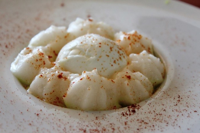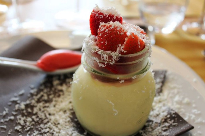 Capitolo a se quello dei dolci dove troviamo preparazioni golose ma leggere con giochi di temperature e sempre note fresche a chiusura, un esempio la crema con yogurt di capra e fragole con granita di lamponi.