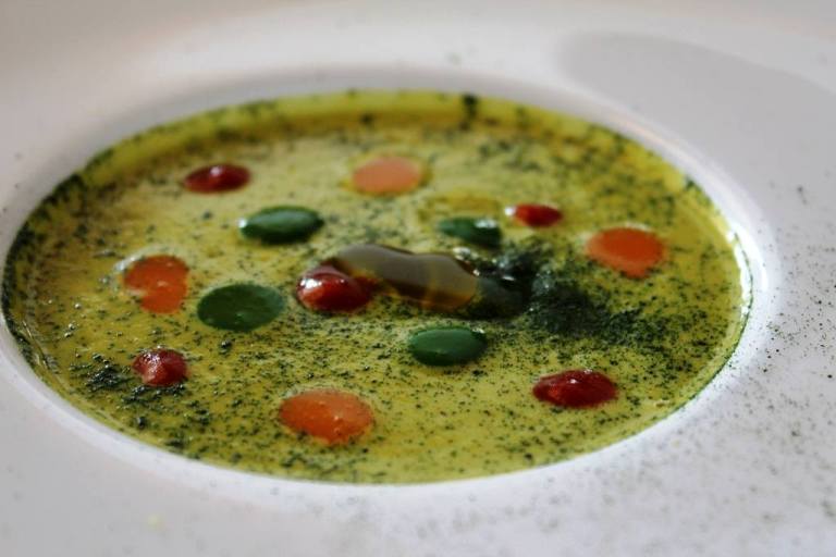 Si trae grande soddisfazione anche dalle proposte senza carne e pesce, come la crema di verdure con Parmigiano Reggiano, una vera delizia, che riesce ad essere un piatto confortevole e rassicurante mantenendo intatta l’aromaticità delle verdure che viene esaltata dal parmigiano.