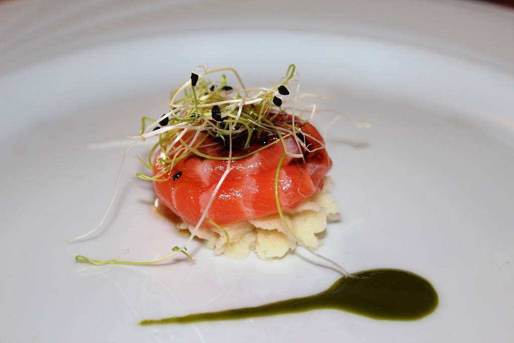 Girato l’angolo, passando tra ricercatezze gastronomiche provenienti da tutta Italia, si arriva alla sala ristorante e qui la cucina di Vittorio Fusari è farò di eleganza e maestria. Il pesce di lago nelle sue mani riesce a mantenere la sua autenticità ed al contempo risultare estremamente piacevole ed equilibrato. Tanta tecnica e soprattutto sensibilità nell’impiego delle verdure di stagione, presenti in ogni piatto mai in secondo pianto ma sempre comprimarie.