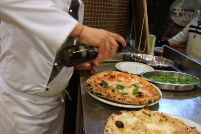 Impasto da disciplinare, con farina doppio zero e un po’ di zero, lievitazione diretta naturale con lievito di birra.