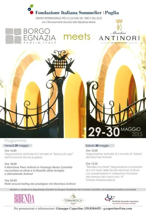 Borgo Egnazia ospita Marchesi Antinori 19/5/2015 Torna a: Fasano, 29-30 maggio. Borgo Egnazia ospita Marchesi Antinori Borgo Egnazia ospita Marchesi Antinori