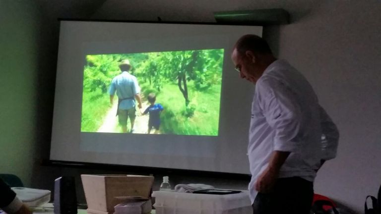 Oltre a spiegare il concetto della valigia del territorio hanno mostrarto agli studenti il docu-film di Loretta Cavallaro, una testimonianza multimediale del territorio e dei produttori delle eccellenze agro-alimentari.