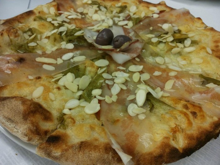 La sua pizza si chiama “Robba”, l’impasto è realizzato con farina di grano tenero e duro e lievito di birra, a lunga lievitazione, con una maturazione tra le 24 e le 48 ore.