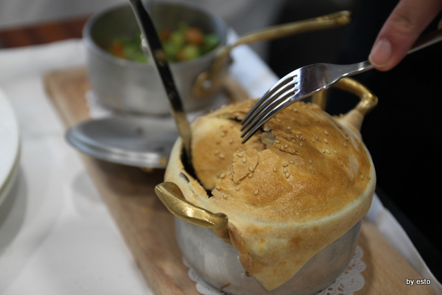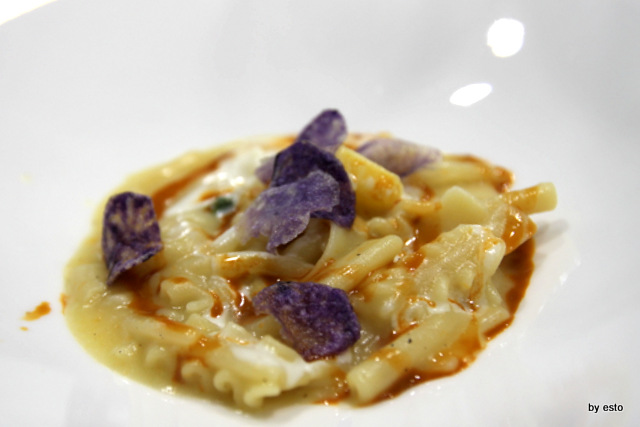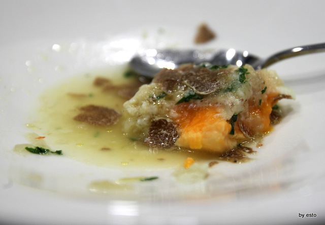 L’idea è quella della zuppetta di cipolla con uovo, non proprio quella dell’ortodosso napoletano uovo ‘mpriatorio. Ma concediamo la variante sannita, quasi a sciusciello, a Giulio e ce lo godiamo lo stesso. E’ buono.