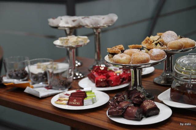 Ma poi si resta presi per la gola e come si fa a completare con le caldarroste e con l’infinita serie di coccole tra cioccolata, praline, cornetti, graffette, bruschetta di nocciole pistacchio caffè e millefoglie alla crema pasticcera con amarene in conserva?