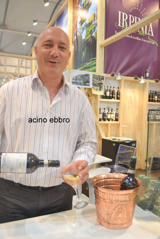 Il percorso tratteggiato dagli stands del padiglione Irpinia vuole in vicinanza alcune delle massime espressioni del greco di Tufo e a questo punto incontriamo Angelo Muto, altro pilastro importante per questo areale di produzione.