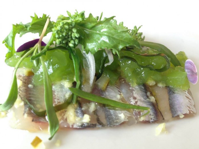 La sarda con la crema annurca gioca sul contrasto estremo e resta un piatto sostanzialmente scisso tra dolcezza, fumé e acidità.