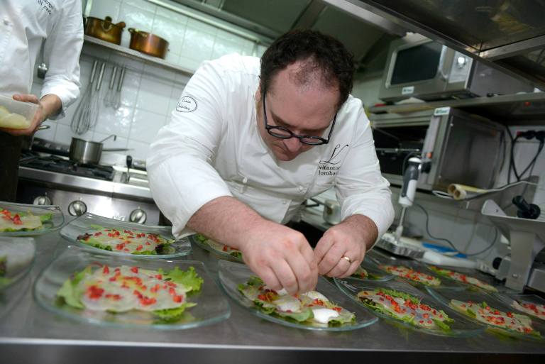 Trasmette la voglia di fare bene, si muove in cucina con rigore, laboriosità e cura per i dettagli, per ogni minimo particolare.