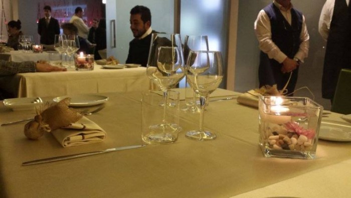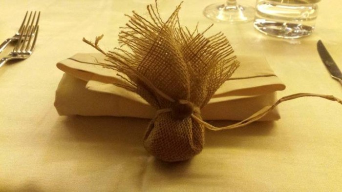 Curata anche la mise en place adornata con un sacchettino di nocciole di Giffoni igp, una delle tipicità simbolo del territorio.