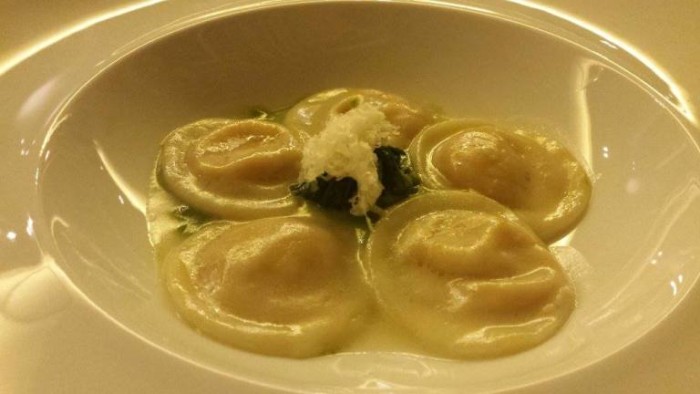 A seguire due primi, ravioli ripieni di cotechino su vellutata di broccoli e neve di pecorino stagionato, un piatto caratterizzato da grande equilibrio e armonia di tutte le componenti, e gnocchetti striati di castagne con fusa di bufala e croccante di cinghiale.