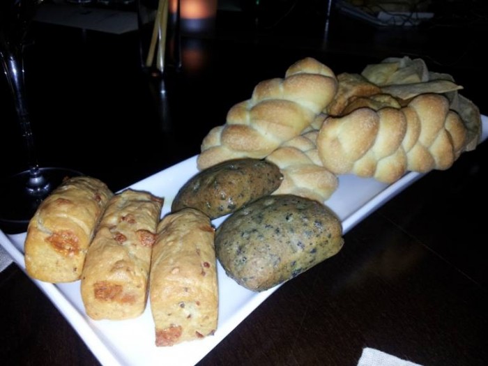 Ricca e gustosissima la selezione di pani preparati e proposti da Peppe Stanzione: babà rustico, treccina, focaccina alle olive nere, fresella morbida con salumi e formaggio e cracker di farina bianca.