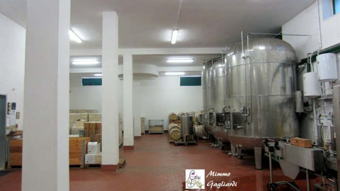 Il fabbricato dove ha sede la cantina, infatti, contempla, al piano terra e seminterrato, gli ambienti dedicati all’attività aziendale, mentre, al primo piano, vi sono gli alloggi per la famiglia. Quello che stupisce è la lucida progettazione di una struttura reticolare in cemento armato, in cui le vasche di cemento per la fermentazione del mosto sono state pensate e costruite quale parte integrante della struttura portante dell’intero edificio aziendale. La disposizione delle vasche, della bottaia e l’accessibilità per le operazioni di cantina in tutti gli ambienti, mi lasciano interdetto per la modernità della sua concezione, anche se la costruzione risale all’anno 1969. Giovanni mi conferma che l’unica opera di innovazione effettuata da allora, peraltro senza stravolgere nulla e senza modificare alcun elemento costruttivo o decorativo originario, è l’installazione del sistema di refrigerazione delle vasche.