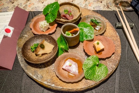 Il menù a disposizione è uno solo: 10 portate all’insegna della bellezza della natura giapponese. Ogni portata viene indicata sul menù come calda o fredda, le temperature, scopriremo, sono molto importanti.