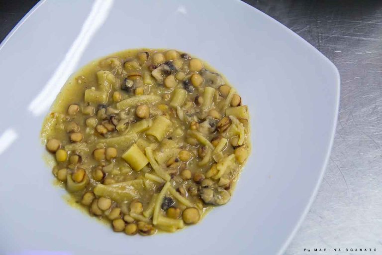 Semplice il primo piatto: Pasta con Cicerchia flegrea e Sconcigli. Semplice si fa per dire, vista la quantità di tempo necessaria alla preparazione.