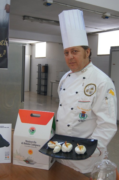 Nino Cannavale, chef e pasticciere aversano, presidente dell’Associazione Cuochi Normanni dedicata alla salvaguardia e al rilancio dei prodotti e della cucina tradizionale di Terra di Lavoro attraverso partnership di qualità, è l’artista che ha trasformato la mozzarella di bufala campana, uno dei prodotti più buoni mai creati dall’umanità, in una dolcezza unica e molto ricercata: la Dolce Bufala.