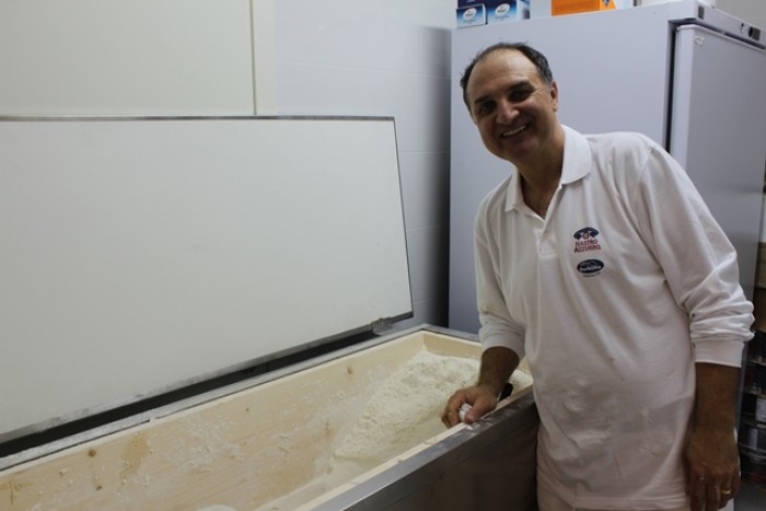 Il braccio di Gino Sorbillo, che sarà comunque spesso presente, è Gennaro Salvo. Lo troviamo intento a preparare, a mano, l’impasto per il giorno dopo.