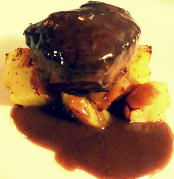 Filetto di bufalo al Porto con patate al forno. Ci ha illuminato pensieri occhi e gola.