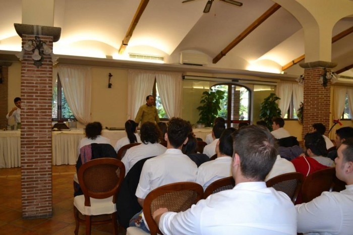 Tommaso De Rosa, uno dei quattro maestri cioccolatieri della scuola Perugina, per oltre tre ore ha illustrato agli alunni tecniche e metodi di lavorazione del cioccolato.