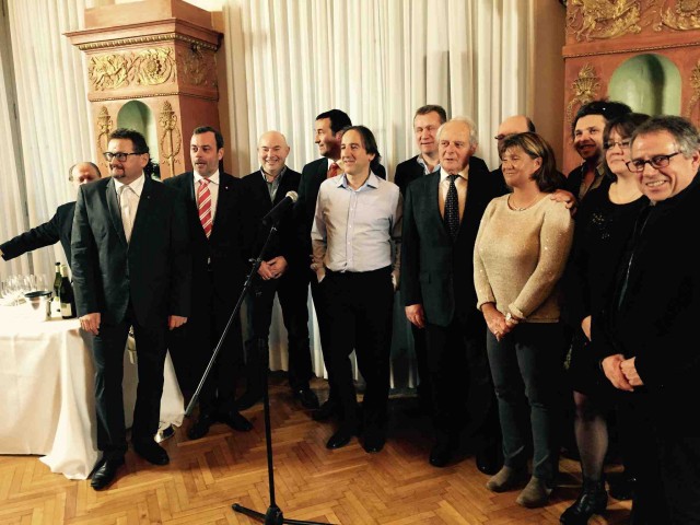 Le Prix Le Montrachet 2014, la premiazione. Fabrizio Franzoi del Ristorante Perbellini – Isola Rizza con la titolare Paola Secchi e Jean Pierre Faraut