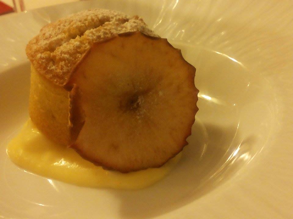 Dulcis in fundo, il tortino alla mela annurca innaffiata dal passito Gelso Bianco Villa Dora.