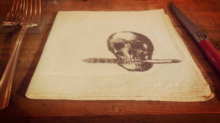 Ferro & legno il locale. Jazz & blues il sottofondo. Teschi e coltelli in tavola.