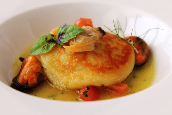Golosi e ben fatti tutti gli antipasti. La rivisitazione dell’insalata di rinforzo, piatto immancabile nelle festività natalizie a Napoli, in questa versione trova leggerezza, in particolare con il cavolfiore usato in crema come esaltatore del gusto. Le tagliatelle di seppia cotte a bassa temperatura sono un gioco, ben riuscito, di contaminazione tra la cultura mediterranea e quella orientale.