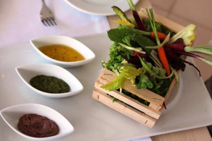 Partenza da incorniciare con il pinzimonio, reperire sull’Isola queste verdure non è semplice, buone e vere provenienti dall’orto della famiglia Montoro, presentazione che mette di buon umore.