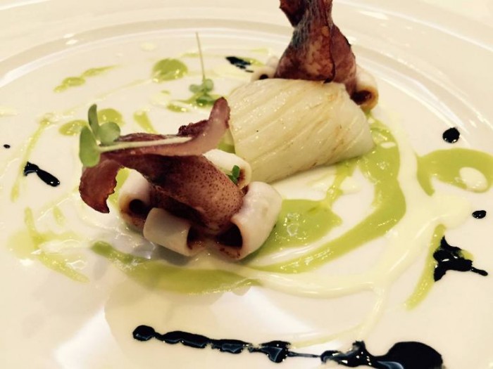 Non mancano idee per gestire la tradizione. Questo tentatocolo di polpo, ad esempio, è su un letto di patate affumicato, quanto pasta per non far dilagare l’amido e per allungare l sapore con il tono fumé