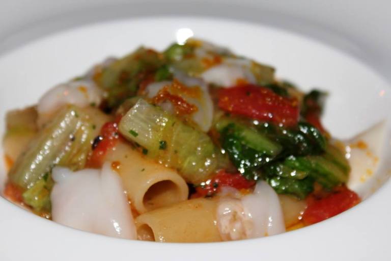 Interessante il piatto di candele spezzate con lattuga, tartufi di mare e bottarga che mi sembra una bella sintesi tra le peculiarità gastronomiche del territorio in una chiave originale che ben soddisfa ed intriga il palato. Il risotto è piacevole con una buona idea di fondo nell’accostamento di elementi intensi e ben dosati.