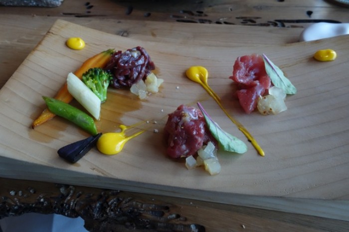 Il tris di fassone, tar-tar, Carpaccio e Diaframma. A far da perno questo cedro candito, davvero notevole, soprattutto da un punto di vista olfattivo. Dimenticabile la maionese calda.