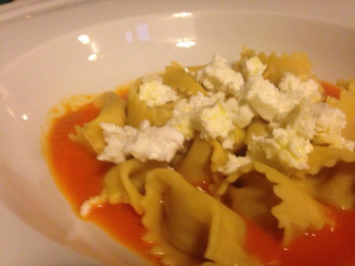 L’alleggerimento lo troviamo anche piatti che sulla carta sarebbero solo per palati forti e robusti. L’agnolotto del plin si trasforma in una caramella al sapore di parmigiana di melanzane, buonissimo, efficace, delicato ed elegante. Davvero un bel piatto mediterraneo.