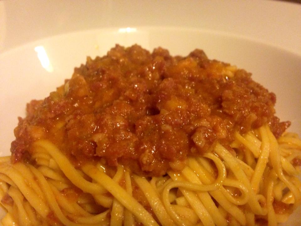 Aereo e leggero il tajarin al ragù di salame.