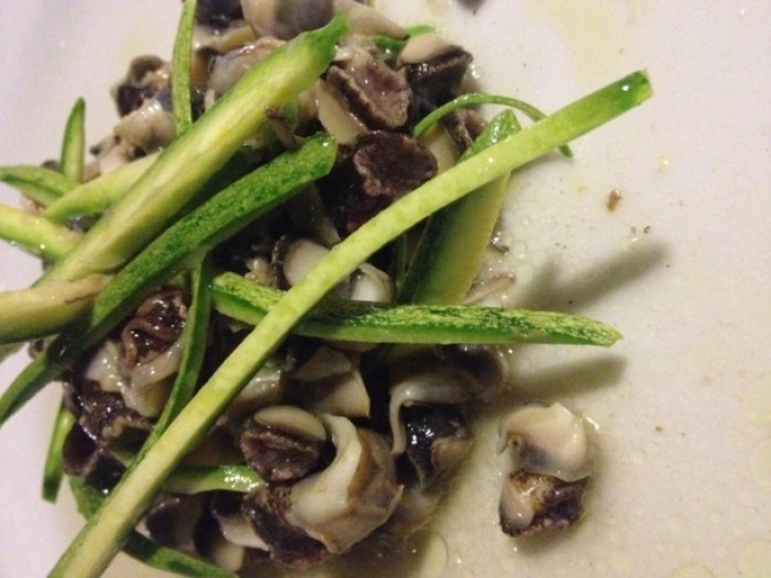 Consistenze centrate anche nell’insalata Posidonia, con morbidi sconcigli arricchiti da zucchine crude julienne, solo un goccio di olio e limone a celebrare un riuscito matrimonio: da bissare assolutamente.