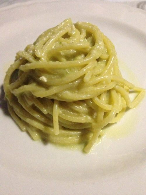 Delicati gli spaghetti alle mandorle e colatura di alici.