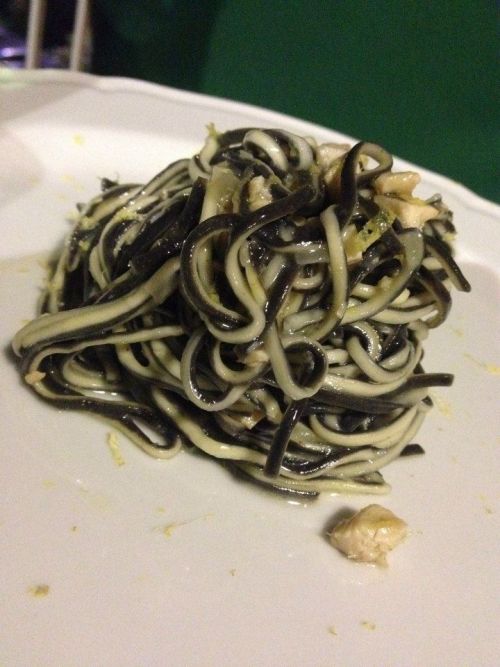 Intensi e goduriosi i tagliolini bianchi e neri (sono gli “amorini” di Leonessa) all’aringa.