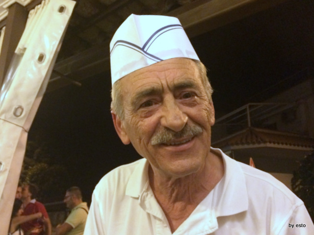 È un vero e proprio personaggio: smilzo, coi baffetti sempre in ordine, lo sguardo guizzante per carpire i desideri dei clienti, con la maglietta bianca, il grembiule e il berretto da garzone senza età.