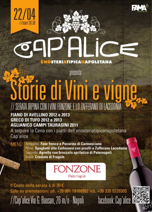Dopo una lunga serie di ospiti provenienti dai territori di produzione del vino italiano più interessanti, Cap’alice sceglie di ritornare sui vini campani. Paternopoli, in Irpinia, è notoriamente una zona enologicamente vocata e da qui sarà protagonista della serata Storie di vini e vigne la cantina Fonzone.