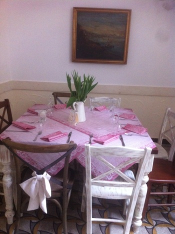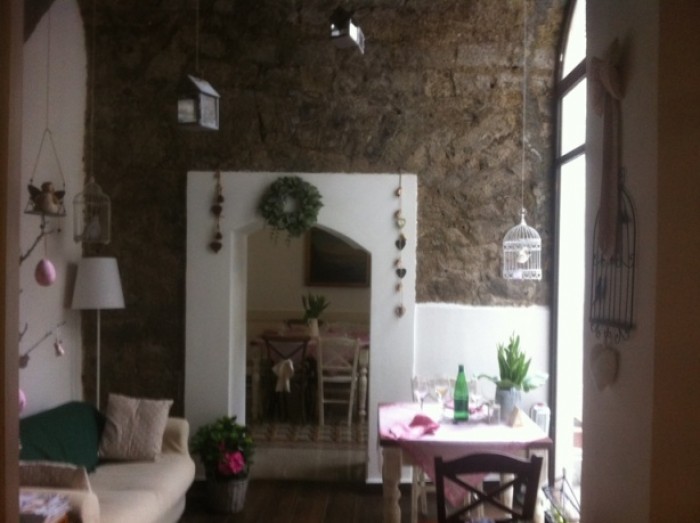 Non quindi una sola sala, ma tante salette intime e calde, arredate con gran gusto, mantenendo in alcuni ambienti, pavimento e soffitto originari. All’ ingresso un bel banco di salumi e formaggi, con proposte non banali (eccellenti i salumi di nero) poiché qui si può venire anche solo per un tagliere e un calice di vino.
