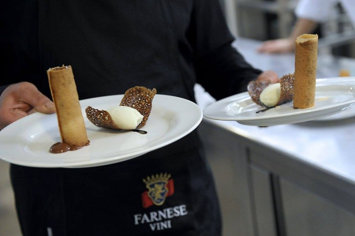 La cassata di Pietro Zito e il cioccolato al finocchio sono la degna conclusione di una cena che ha visto invitati il meglio del giornalismo enogastronomico, distributori internazionali, Buyer e autorità abruzzesi, il tutto ben orchestrato dall’amministratore delegato di Farnese Group Valentino Sciotti e il giornalista Massimo di Cintio responsabile dell’ufficio stampa.