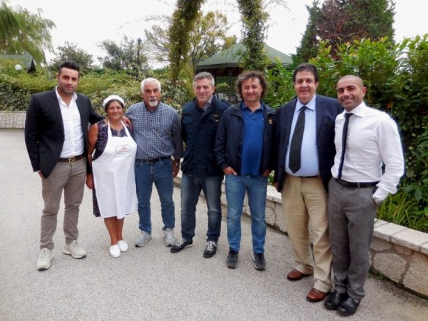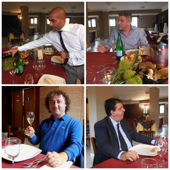 Albergo Villa Rosa, in senso orario: Roberto Pepe, titolare e direttore dell’albergo, Giacomo Pastore il taurasino, Luciano Pignataro, Alessandro Barletta il re di Slow Food Taurasi